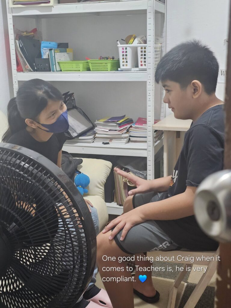 This was yesterday, despite being late, he insisted going to school. But for SNED learners like Craig, being in Mainstream does not automatically reflect their academic level. (Of course, some SNED learners are geniuses. But Craig’s story is different.)