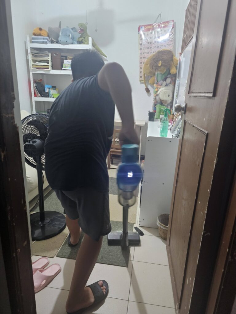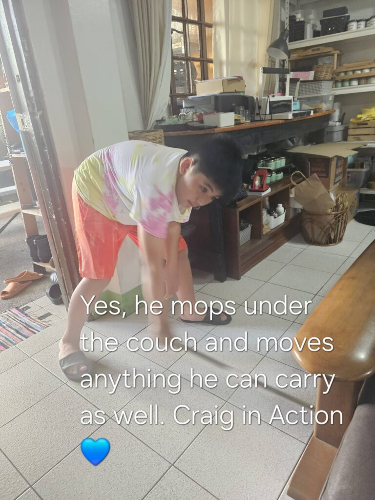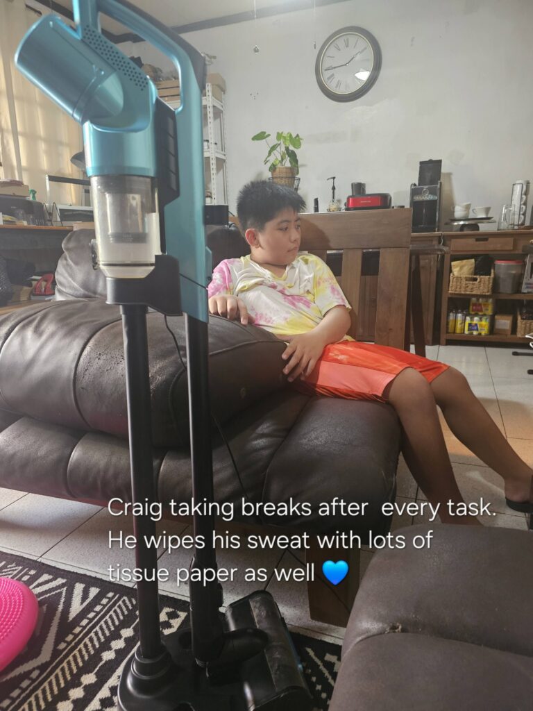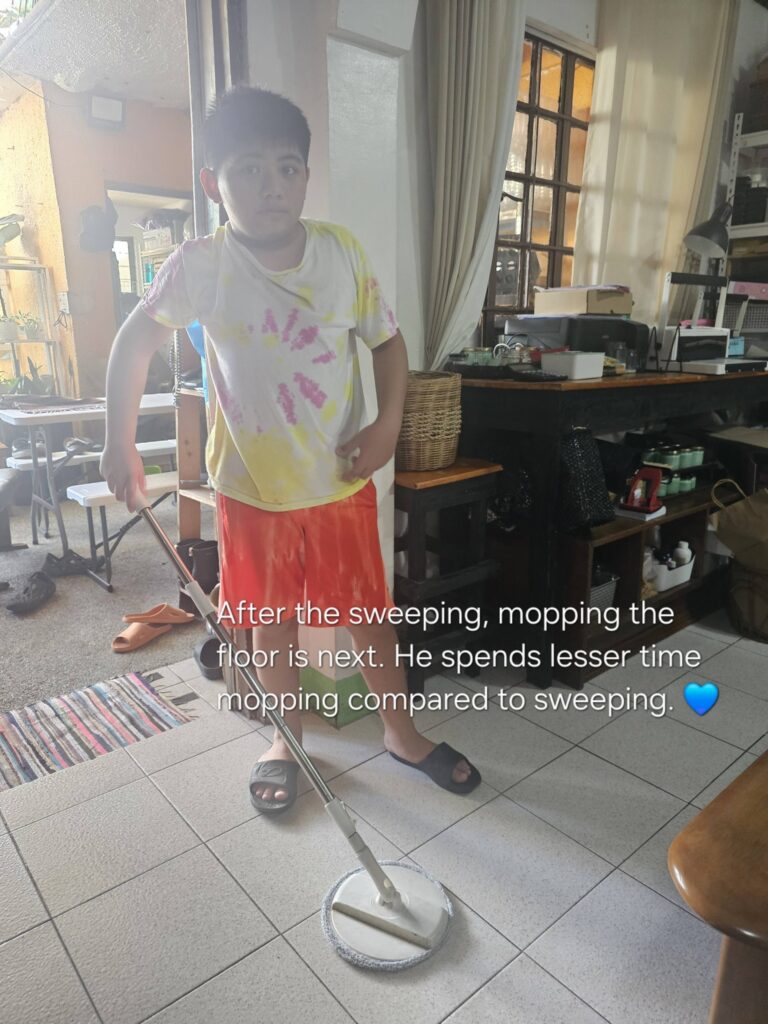 Time check: 1 PM. Still a long stretch before therapy at 3:30 PM. On normal days, he would already be sweeping or wiping surfaces voluntarily. But because his expectations for exams weren’t met today, I could feel a meltdown brewing.